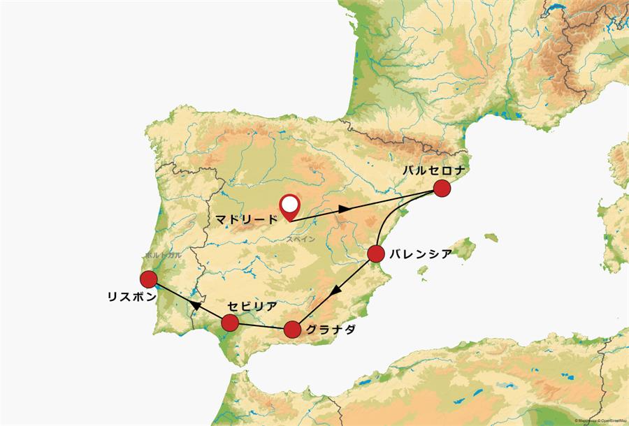 **マドリード/サラゴサ間は多国籍のお客様と同じバスでご案内するインターナショナルバスとして運行します。なお、日本のお客様の参加人数により通常の日本語バスとなる場合があります。**