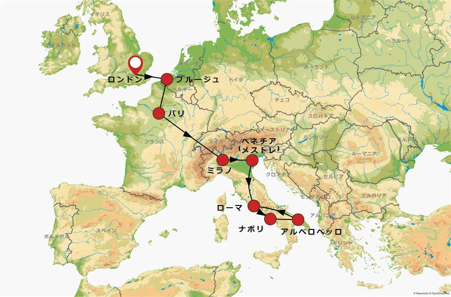 ※アマルフィ海岸ではバスの車両規制に伴い、移動時のみバス2台に分乗する場合があります。またアマルフィドライブは現地事情により行程変更や、観光箇所が割愛となる場合がございます。