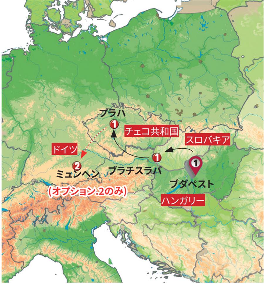 ※5月2日、8月29日、1月9日の宿泊都市は、ガーヒング・バイ・ミュンヘンとなります。