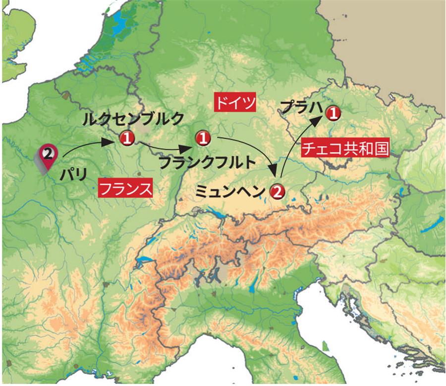 ※5月2日、8月29日、1月9日の宿泊都市は、ガーヒング・バイ・ミュンヘンとなります。