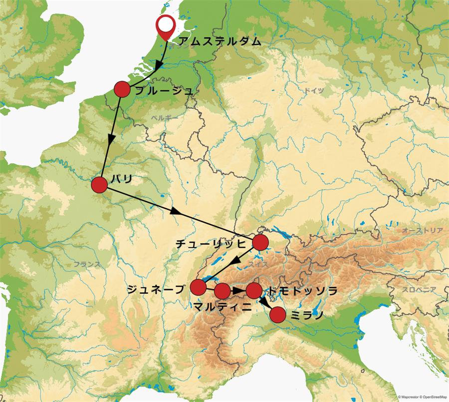1700:ローカル列車でチューリッヒ中央駅到着後、駅にて解散します。ホテルへは各自にてお戻りください。