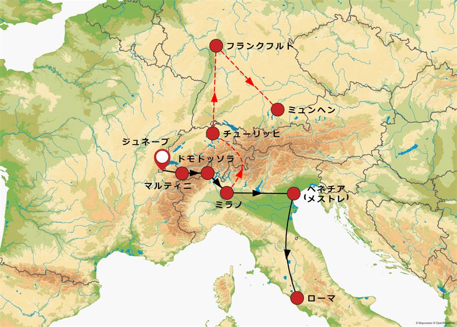 ※5月3日、8月30日、1月10日の宿泊都市は、ガーヒング・バイ・ミュンヘンとなります。