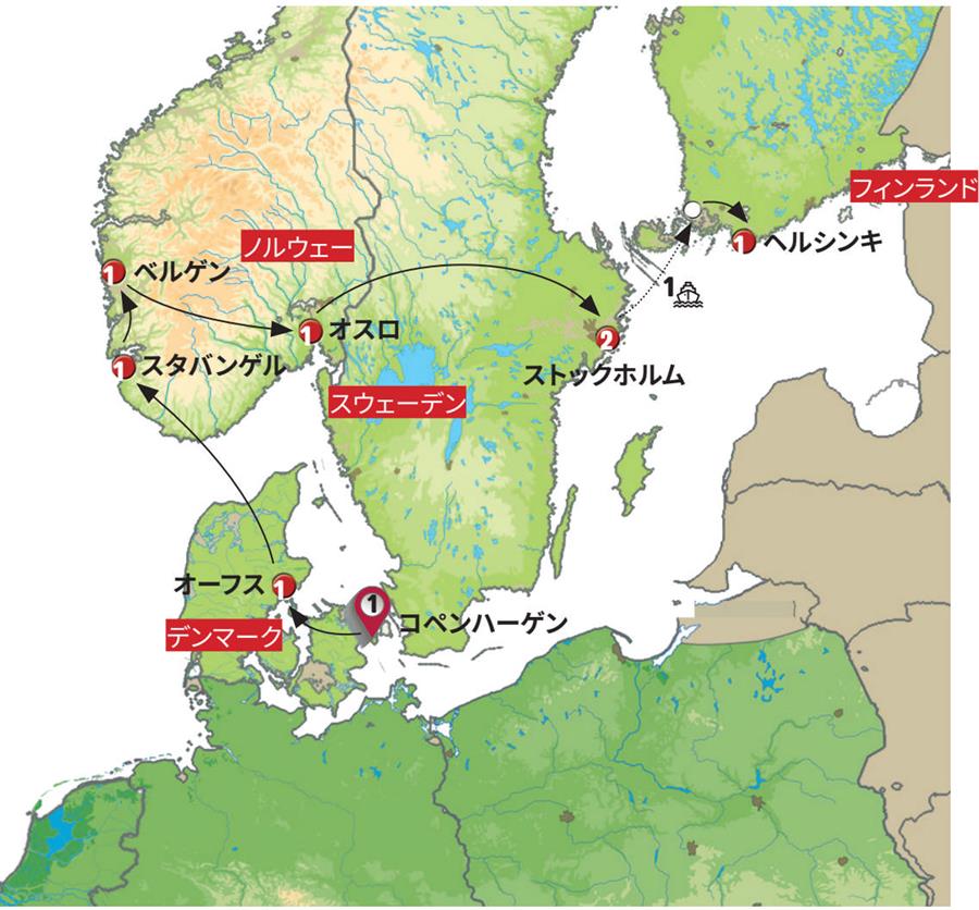 ※フェリーの出航時間によってベルゲンでの自由行動時間や昼食の時間をお取りする場所が変更になる場合がございます。