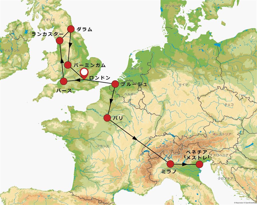 2200-2330:ミラノ着後、お客様ご自身でホテルへ